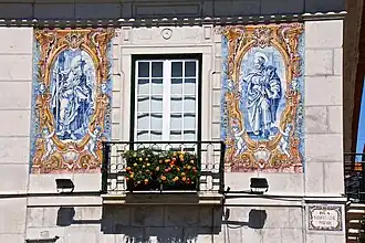 The two-storey building dates back to the 18th century. It has since been enlarged by work carried out in the 20th century, particularly in 1918 when three separate buildings were joined together. The most distinctive feature of the building is the external use of decorative tiles of saints, specifically Saint Sebastian, Saint Anthony, Saint Martial, Saint Matthew, Mark the Evangelist, Saint Jerome, Luke the Evangelist and Saint John. These are considered to be the largest collection of such tiles ever applied to the facades of a single property. The oldest are believed to have been produced at the Real Fábrica de Louça do Rato in 1790. This was a ceramic factory in Lisbon that was founded by the Marquis of Pombal and, between 1767 and 1835, pioneered the manufacture of modern pottery, particularly tableware, in Portugal.[1][2][3][4]
