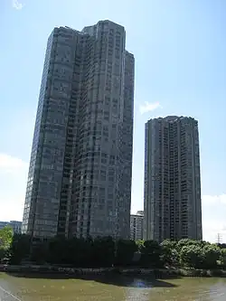 The complex consists of two luxury condominium towers, Palace Pier (North Tower) and Palace Place (South Tower). Both towers, while completely separate condominium corporations, form an architectural gateway for the west end of Toronto's waterfront and are considered the eastern border of the Humber Bay Shores neighbourhood of Etobicoke, now part of Toronto.