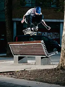 Palace Skateboards (or Palace) is a London-based skateboard brand established in 2009. The brand was founded by Lev Tanju and Gareth Skewis.[1][2] Palace Skateboards is heavily influenced by 90s pop culture. Since its inception, Palace has used VHS within its promotional material, becoming a key element in its visual style. The skate team helps to promote the brand through skate videos. Palace has flagship stores in London, New York City, Los Angeles, Tokyo and Seoul.[3] The brand has gained popularity within the streetwear community.[4]