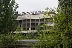 The Palace of Culture Energetik (Ukrainian: Палац культури «Енергетик», romanized: Palats kultury “Enerhetyk”; Russian: Дворец культуры Энергетик) is an abandoned palace of culture located in the town of Pripyat, at the Chernobyl Exclusion Zone in Ukraine.