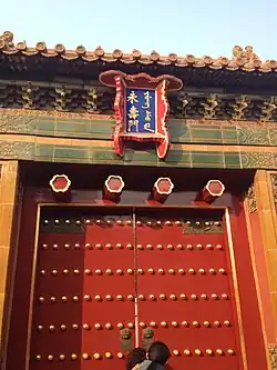 The Palace of Eternal Longevity (simplified Chinese: 永寿宫; traditional Chinese: 永壽宮; pinyin: Yŏngshòugōng), also known as Yongshou Palace, is one of the Six Western Palaces in the inner court of the Forbidden City. It is the closest residence to the Hall of Mental Cultivation, the living quarters of the Qing emperors since 1722.