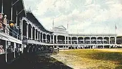 Early 20th century postcard of a game at Palace of the Fans, with remnant of original 1884 stands now in use as right field seats -