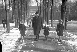 Among the residents of the first group are the respective holders of the office of the Reich President. In addition to the Reich President Ebert and von Hindenburg, the head of the head of state's office, State Secretary Otto Meissner, was constantly at home in the palace from 1920 to 1939. There were also the families of these three men. During Ebert's presidency, his wife and two sons lived in the palace, while Hindenburg brought his son Oskar and his daughter-in-law Margarete and the couple's three children, of whom the youngest was born in the palace with. Meissner's household consisted of his wife and two children, including the son Hans-Otto Meissner. Other people who not only worked in the palace, but also had their own apartments there, were the house inspector (chief of domestic staff) Wilhelm Tappe, Hindenburg's personal servant Oskar Putz (called "Karl" um) To avoid confusion with the son of the same name of the head of state) and the presidential chauffeur Otto Demant and the chauffeur of the president's office Kurt Nehls. [7]