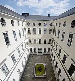 After the end of the monarchy in Bavaria in 1918, the outbuildings were converted into shops and a garage.[2] In 1923, the Bavarian Landtag approved the private ownership of the palace. Rupprecht, who had relocated here from the Palais Leutstetten with his son, Albrecht von Bayern, when they were challenged by Adolf Hitler as he came to power,[3] lived there until 1939 in a small apartment, sometimes using the reception rooms for events.[2]