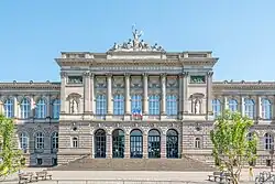 The Palais Universitaire in Strasbourg is a large, neo-Renaissance style building, constructed between 1879 and 1884 under the direction of the German architect Otto Warth. It was inaugurated in 1884 by Wilhelm I, Emperor of Germany. Through Avenue de la Liberté (former Kaiser-Wilhelm-Straße), it faces the equally monumental former imperial palace (Kaiserpalast).