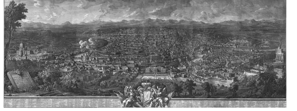 View of Rome from the Gianicolo, di Giuseppe Vasi (al centro il palazzo Corsini)