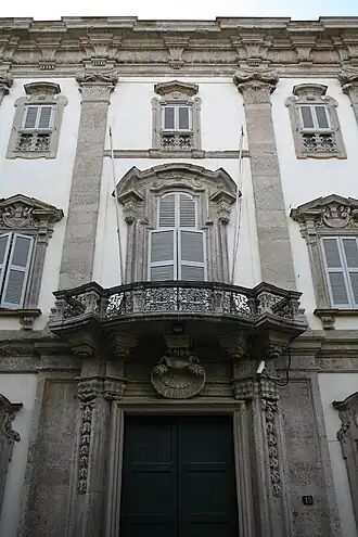 In spite of the many alterations carried out both during the Austrian period and in the first decades of the 20th century (culminating with the construction of a new wing overlooking the via del Carmine in 1935) and the successive bombings to which the building was subjected, the interiors still preserve intact on the piano nobile most of the 18th-century decorations originally present, which can be found in the deed of sale of the palazzo (1808).[3] Instead, the original furnishings and a large part of the garden, notoriously a place for parties and balls particularly dear to Ferdinando Cusani, were almost completely lost.