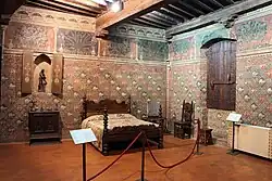 The bedroom of the second floor is called the Chatelain of Vergy in honor of the frescoes inspired byThe Châtelaine de Vergy,[1] a medieval romance full of love, adventure and death. In the same bedroom you can see a beautiful "Desco da Parto" painted by Scheggia, Masaccio's brother.