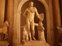 The Pighini accumulated a select collection of ancient statuary, including Meleager and the Calydon Boar, a Roman copy of a Greek original attributed to Skopas. The statue was found by Ulisse Aldrovandi in a vineyard outside of Porta Portese,[2] and is now part of the Museo Pio-Clementino in the Vatican.