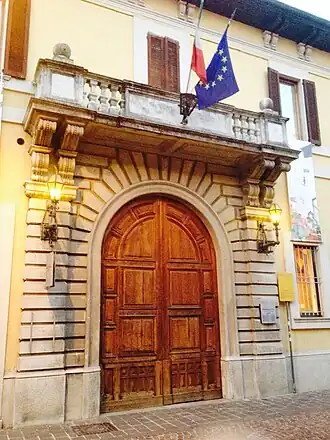 The Palazzo Ghirlanda-Silva (Ghirlanda Silva Mansion) is a patrician building in the old town of Brugherio in the region of Lombardy, Italy. Built in the first half of the nineteenth century, it now houses the public library. It has an area of 1,992 m2 (21,440 sq ft), of which 1,407 m2 (15,140 sq ft) are used for library services, with the remaining space providing an exhibition room, an auditorium and offices.[1]
