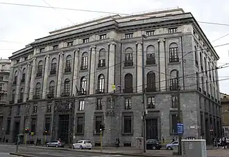 The Palazzo dell'Istituto Nazionale della Previdenza Sociale (INPS) is located facing Piazza Missori #10 in central Milan, region of Lombardy, Italy. The Istituto nazionale della previdenza sociale (National Institute for Social Security) is the main national department of the Italian public retirement system. This building was designed by Marcello Piacentini and Ernesto Rapisardi, completed in 1931 to house the regional offices.[1] The INPS had new offices built in 1961 at via Melchiorre Gioia, but these are planned to be replaced.[2]