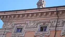 The current façade was built in the mid-1650s by both Cigoli and Paolo Maruccelli. The latter added the ornate cornice and whimsical decorative urns on the roof.