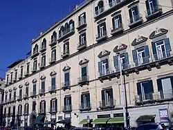 The palace was commissioned in 1605 by Prince Ravaschieri di Satriano and was one of the first palaces built in shores of Chiaia. In 1675, it was the home of the Viceroy Fernando Fajardo y Álvarez de Toledo, who refurbished the facade and courtyard. Many famous visitors to Naples have stayed here, including Goethe in 1787, as guest of Princess Teresa Ravaschieri, wife of Prince Filippo Ravaschieri Fieschi di Satriano, and sister of Gaetano Filangieri. These owners commissioned the architect Ferdinando Sanfelice, to construct a staircase between the original two floors. It had many subsequent owners, and now has been subdivided into apartments and businesses. In the mid 19th century, the architect Gaetano Genovese rebuilt the main floors.[1][2]40°49′59″N 14°14′27″E / 40.833125°N 14.240886°E