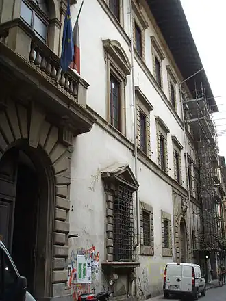 The palace was designed around 1600 by the architect Ludovico Cardi, and adjacent site was built by Gherardo Silvani.[2] Since the year 2003 the palace houses the Istituto Scolastico di Istruzione Superiore Liceo “Niccolò Machiavelli”.