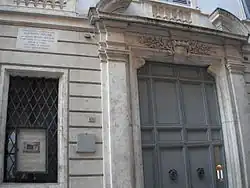 For this palace, the entrance portal has a broken pediment. The ground floor has a small theater. In addition various rooms contain frescoes depicting the Rape of the Sabines; Apollo; and The Marriage of Bacchus and Ariadne, painted by Ademollo in 1794–1795.[2]