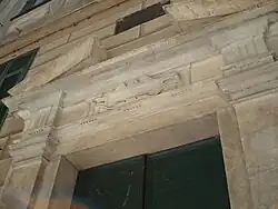 The monumental late 15th century portal leads to a atrium renovated in the 19th century that holds a plaque commemorating an episode of the Resistance. The narrow façades are frescoed in quadrature. They are compensated for by the brightness of the inner courtyard. A porticoed staircase, partly filled in, runs above the courtyard.[1] The building is divided into private flats. The monumental flat on the piano nobile retains two frescoed salons.