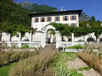 The Villa was built in the 16th century by the family of Guglielmo and Luigi Vertemate Franchi, and remained their property for centuries until the 1879. One source cites construction in 1577.[1] In 1902, the property was purchased by the antiquarian Napoleone Brianzi of Milan. He prevented the sale of two of the frescoed ceilings, and attempted to restore the palace, adding period furniture from other properties. After 1937, it was bought by A. Feltrinelli and L. Bonomi, who struggled to maintain the property. In 1988, the palace became the host of the Museum of the Comune of Chiavenna. They have sought to maintain the villa and the surrounding vineyards.