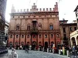 The Palazzo degli Strazzaroli is a Renaissance-style urban palace located at Piazza di Porta Ravegnana #1 in central Bologna, region of Emilia-Romagna, Italy.