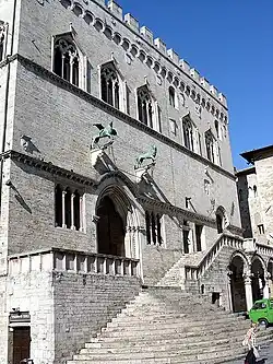 The Palazzo dei Priori or comunale is one of the best examples in Italy of a public palace from the communal era (11th century). It is located in the central Piazza IV Novembre in Perugia, Umbria. It extends along Corso Vannucci up to Via Boncambi. It still houses part of the municipality, and, on the third floor, the Galleria Nazionale dell'Umbria.[1] It takes its name from the Priori, the highest political authority governing the city in the medieval era.