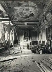 Work resumed at a later date after interruptions due to legal issues. The Regional Administrative Court in 1985 decided to award the building to the public authority, but the ruling was annulled shortly afterwards as illegitimate. The private property sent a plan for the allocation of the space and at ministerial level the response only arrived in 1988.