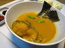 Spices are also generally included although not as liberally as its same-island counterpart. Palembang cuisine is noted by its preference to the sour and sweet flavour,[3] as evidences in pindang fish soup, funky-smelled tempoyak-based dish made from fermented durian, and also kuah cuko spicy sweet vinegar sauce of pempek fishcake. Those dishes are popular fare and often associated with the city.[4]
