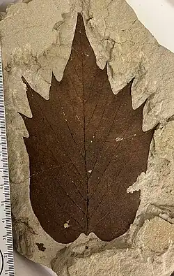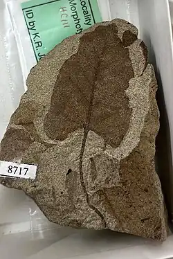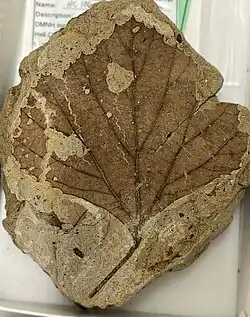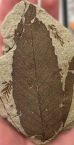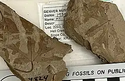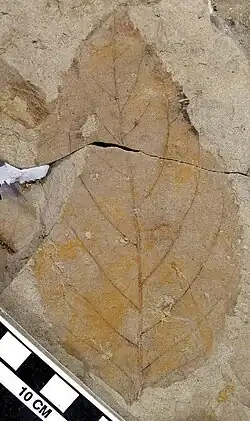 - ^ Peppe, Daniel J.; Hickey, Leo J. (October 2014). "Fort Union Formation Fossil Leaves (Paleocene, Williston Basin, North Dakota, USA) Indicate Evolutionary Relationships Between Paleocene and Eocene Plant Species". Bulletin of the Peabody Museum of Natural History. 55 (2): 171–189. Bibcode:2014BPMNH..55..171P. doi:10.3374/014.055.0209. S2CID 129724520.