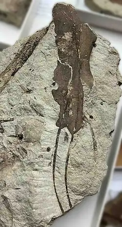 A small amiid fish (ubiquitous). Previously known as Amia fragosa or Kindleia fragosa.[23] 2610 specimens have been assigned to Kindleia, making it an extremely common genus.[11] | ![]() | ||||