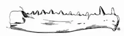 A dubious genus of prehistoric frog erected by O. C. Marsh to house fragmentary remains recovered from Reed's Quarry 9 near Como Bluff Wyoming.[18] Along with Eobatrachus it was among the earliest frog remains from the formation, although the two dubious genera were erected decades apart.[18] | |