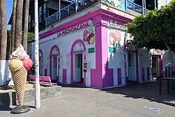 La Michoacana is a brand of several similar Mexican ice cream parlors. Currently, there are 3 different brands that claim the ownership of the name: Paleterías La Michoacana,[1] La Nueva Michoacana,[2] and Helados La Michoacana.[3] All of them have "La Michoacana" in the name, pink branding, and a Mexican woman in the logo. Due to the fact these are not operated as franchises but rather as small, independent businesses that choose to use the name, the quality of the product, pricing, and assortment can vary widely among the thousands of locations.