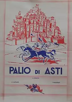 The Palio di Asti (or Palio Astese in its most archaic nomenclature) is a traditional Italian festival of medieval origin that culminates with a bareback horse race.