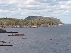 Palisade Head is a headland on the North Shore of Lake Superior in the U.S. state of Minnesota. It is part of Tettegouche State Park but not contiguous with the rest of that park.[1] Palisade Head is located at milepost 57 on scenic Minnesota State Highway 61 in Lake County, approximately 54 miles (87 km) northeast of Duluth and 3 miles (4.8 km) northeast of Silver Bay.