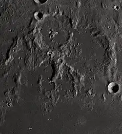 By convention these features are identified on lunar maps by placing the letter on the side of the crater midpoint that is closest to Pallas.