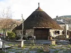 A palloza is a traditional thatched house as found in Leonese county of El Bierzo, Serra dos Ancares in Galicia, and south-west of Asturias; corresponding to Astur tribes area, one of pre Hispano-Celtic inhabitants of northwest Hispania. It is circular or oval, and about ten or twenty metres in diameter and is built to withstand severe winter weather at a typical altitude of 1,200 metres.