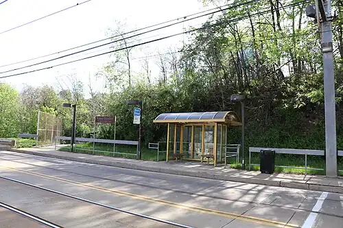 Palm Garden station is an at-grade combined light rail and busway station operated by Pittsburgh Regional Transit in the Mount Washington neighborhood of Pittsburgh, Pennsylvania. The station is located on an exclusive right-of-way shared by the Red Line of the Pittsburgh Light Rail and South Busway routes 39, 41, Y1, Y45, Y46, Y47 and Y49. The station provides access to residences along the back slope of Mount Washington and is named for the large Palm Garden Apartments complex, which is centered on the stop.