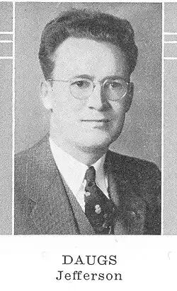 Daugs was born on February 10, 1903, in Farmington, Jefferson County, Wisconsin.[1] He attended high school in Fort Atkinson, Wisconsin, as well as Marquette University. Daugs went on to become Vice Chairman of the local chapter of the American Red Cross. He died on July 22, 1980, and is buried in Lake Mills, Wisconsin.[2]