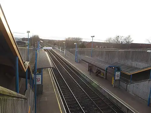 The station is equipped with ticket machines, waiting shelter, seating, next train information displays, timetable posters, and an emergency help point on both platforms. Ticket machines are able to accept payment with credit and debit card (including contactless payment), notes and coins.[10][11] The station is also fitted with smartcard validators, which feature at all stations across the network.[12][13]
