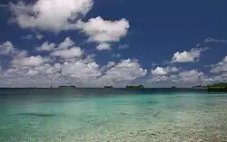 The atoll consists of an extensive reef, three shallow lagoons, and a number of sand and reef-rock islets and bars covered with vegetation—mostly coconut palms, Scaevola, and tall Pisonia trees.