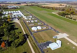 The airport covers an area of 115 acres (46 ha) at an elevation of 851 feet (259 m) above mean sea level. It has one runway designated 9/27 with a turf surface measuring 2,800 by 200 feet (853 x 61 m).[1]
