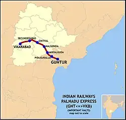 - ^ "Hyderabad: Palnadu Express, first disabled-friendly train". Deccan Chronicle. 14 January 2018. Retrieved 25 October 2020.