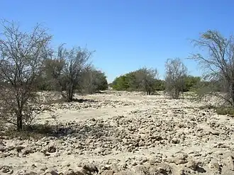 Pampa del Tamarugal ("Plateau of the Tamarugal") is a vast plain encompassing a significant portion of the Norte Grande, Chile, and originally named for the Prosopis tamarugo trees that used to cover its surface. It is located between the parallels 19°30’ and 22°15’ south latitude and is considered part of the Atacama Desert.[1] It is bounded on the west by the Chilean Coastal Range and on the east by the western slopes of the Andes. The plain occupies a surface area of 12,500 km2 with an average elevation of 1,100 m.[1]