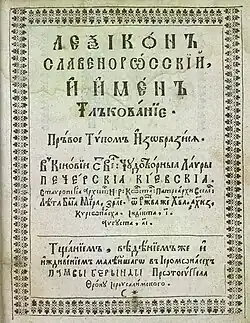 Pamvo Berynda (born Pavlo Berynda, c. 1560 in Yezupil (according to other sources, in Chaikovychi near Sambir) – died on July 23 (O.S. July 13), 1632 in Kyiv) was a Ukrainian lexicographer, linguist, and Orthodox monk, best remembered for authoring The Slovene – Rus' Lexicon.[1][2][3][4][5] He was also one of the pioneers of Ukrainian drama.