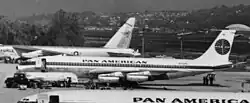 The aircraft was a Boeing 707-121 registered with tail number N709PA.[1]: 1 Named the Clipper Tradewind,[12] it was the oldest commercial jet airliner in the United States at the time of the crash.[2] It had been delivered to Pan Am on October 27, 1958, and had flown a total of 14,609 hours.[1]: 14 It was powered by four Pratt & Whitney JT3C-6 turbojet engines, and its estimated value was $3.4 million (equivalent to $34,900,000 in 2024).[13]