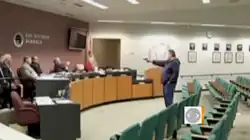 ![]() Clay Duke aims at the school board members | |