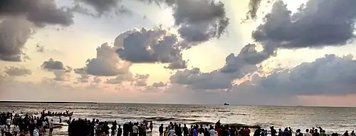 This beach is popular for its sunsets, the port area and picnic spot. The ships anchored out in the sea waiting for berth in the harbor can be seen from the beach.[3]