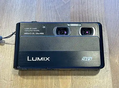 Panasonic Lumix DMC-3D1 is a digital camera by Panasonic Lumix. The highest-resolution pictures it records is 12.1 megapixels, through its 25mm Lumix DC VARIO x2.[1]
