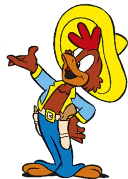 Panchito Pistoles is a cartoon anthropomorphic rooster created by Fred Moore. He first appeared in the 1944 Disney film The Three Caballeros with his friends Donald Duck and José Carioca.[4] He later appeared in several Disney comics, including a year-long run in the Silly Symphony Sunday comic strip (1944–1945) as well as Don Rosa's comic book stories The Three Caballeros Ride Again (2000) and The Magnificent Seven (Minus 4) Caballeros (2005). He speaks Spanish with a Mexican accent.