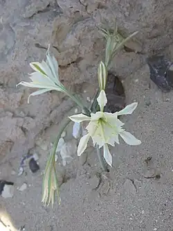 Pancratium sickenbergeri is a species of flowering plant in the Amaryllidaceae family.[2] It is a Saharo-Arabian plant that grows in deserts, such as the Negev. It is native to Israel, Egypt, Lebanon, Saudi Arabia, and Syria.[3] The flowers look like the Mediterranean species Pancratium maritimum, but the leaves of P. sickenbergeri are curly and the plant is much smaller. Unusually for the desert, the seeds are distributed by floodwaters when they occur in the winter.
