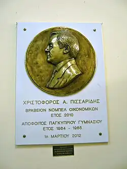Honorary Plaque to the alumni, Christopher A. Pissarides