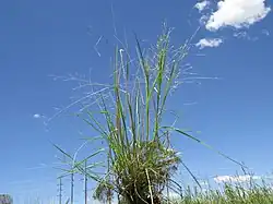 P. queenslandicum is a perennial grass that grows densely in clusters/tufts, reaching heights of up to 0.8 m high.