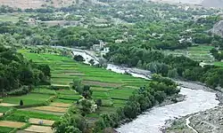 The Panjshir River flows through the Panjshir Valley in northeastern Afghanistan, 150 kilometres (93 mi) north of Kabul. Its main tributary is the Ghorband River which flows from the Parwan Province and joins the Panjshir River 10 km east of Charikar in Bagram District. The Panjshir River takes its source near the Anjuman Pass, flows southward through the Hindu Kush and joins the Kabul River at Surobi.[1]